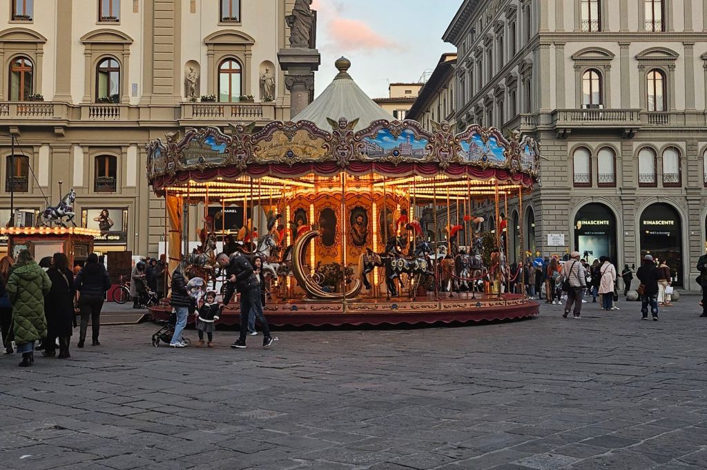 The smell wasn’t much different. Took pictures around and with the significant Ancient Tuscan Carousel and carried on treading through all the different stores, all the way to the river cutting through the city. It looked magical and vast and greenish-blue under the bright sky.